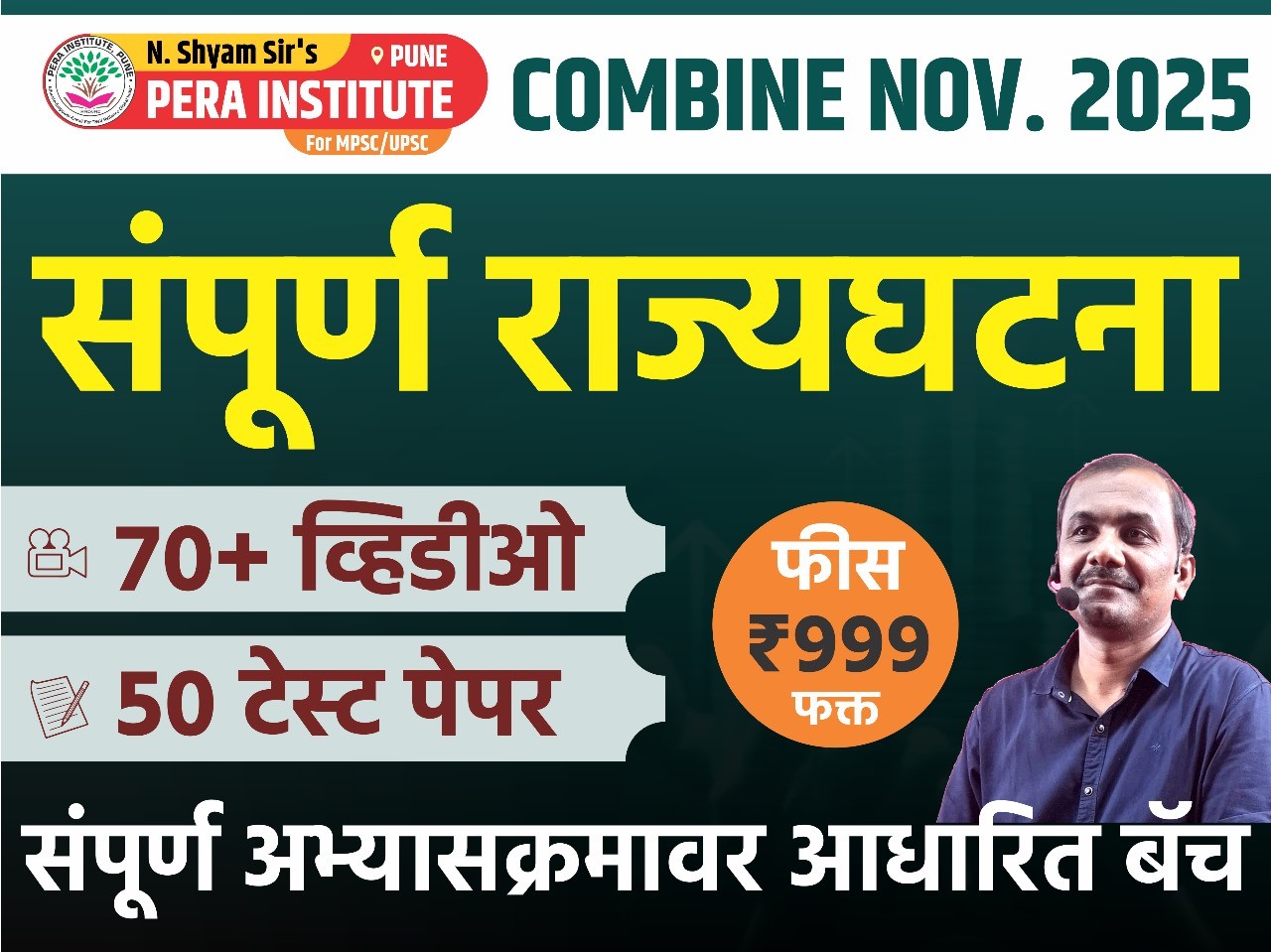 राज्यघटना संयुक्त पूर्व आणि मुख्य साठी 2025 राज्यघटना विषयाची संपूर्ण तयारी पूर्व आणि मुख्य 15 पैकी 15 गुण मिळवून देणारी बॅच कोर्स मध्ये सर्व टॉपिक वर नोट्स आणि टेस्ट अपलोड केले आहेत